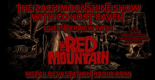 The Red Mountain joins The Zach Moonshine Show , alongside co-host Raven , to discuss their upcoming show at Gray Fest 2024 , their new single ' Babble On ', their recent performance at Tennessee Metal Devastation Music Fest 2024 and much more! We play new music from the band as well as new releases from Dumb Posh Hippes, Virya, Ara Solis Band, Casket Robbery, Whitechapel, Signs Of The Swarm, Face Yourself, Mindy Jackson - Dying Oath, Yotuma, Dax Riggs, Black Altar, EMBR, Talia Hoit, Dayglo Mourning , and Crucifer !