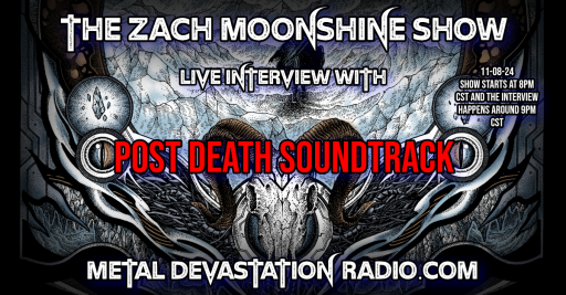 Post Death Soundtrack joins The Zach Moonshine Show, to discuss their new release 'Veil Lifter' and much more! We play new music from the band as well as releases from Lömsk, Ranthiel , Decryptor, Peeling Flesh, Massacre (Tampa), Neckbreakker, Black Spell, Hela , Ola Englund, Crazy Mad Ride, Malevolence, Flyofchange, and DONEFOR!
